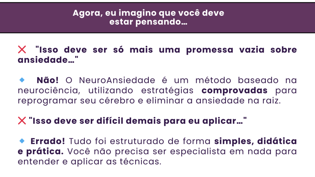 A venda do Método NeuroAnsiedade só pode ser realizada através deste site. Qualquer outro site onde você encontre este programa é uma FALSIFICAÇÃO e vai contra as leis. Evite falsificações e recuse conteúdos ilegais ou pirateados. NÃO adquira programas parecidos e que não são baseados em anos de estudo da psicologia comportamental. Não nos responsabilizamos por compras realizadas em outros sites.